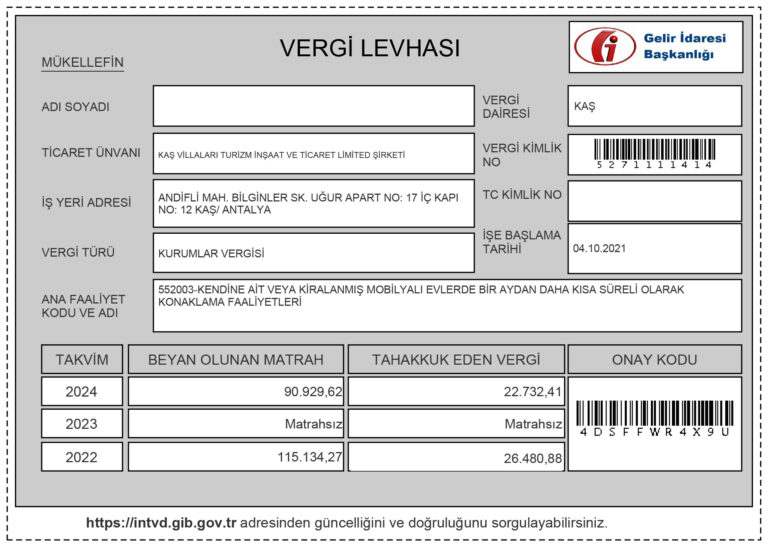 Kaş Villaları Turizm İnşaat ve Ticaret Limited Şirketi